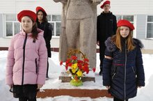 В рамках военно-патриотического месячника прошла акция "Цветы у обелиска". Отряд Юнармии возложил цветы к памятнику.