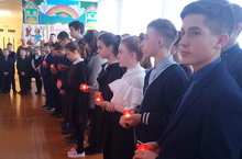 После первого урока зажглись свечи в память о блокаде Ленинграда.
