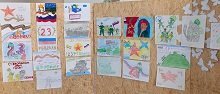 В преддверии дня защитника Отечества, ученики начальной школы нарисовали рисунки - поздравления, которые повесили на стенд школы. А также изготовили поделки-подарки для пап, братьев,дедушек. -