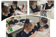 Учащиеся 1 класса раскрашивают Комикс "Алло, это Миляуша Айратовна".