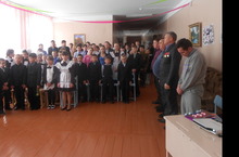 По традиции, в школу приглашены участники афганской и чеченской войн: Кузнецов Сергей Александрович, Ахметханов Азат Назифович, Шайхутдинов Айрат Монахирович, Насретдинов Альберт Адипович. На фото -минута молчания по всем погибшим участникам военных действий.