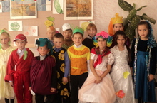 Сегодня в начальных классах было проведен праздник Осени. Ребята в костюмированных костюмах отгадывали загадки, читали стихи, показывали сценки.