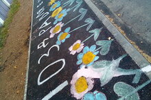 авыл халкы өчен башлангыч сыйныф укучылары мәктәп каршындагы асфальтка рәсем ясадылар.