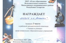 Ни директор и ни я.Математика – гимнастика ума.Логично мыслить учит нас она.Из всех наук важнейшая,Мудрая, точнейшая.Сегодня наши воспитанники подготовительной группы "Смешерики" Антипов Тимур и Фардиева Эльвина заняли 3 место в олимпиаде по математике. ПОЗДРАВЛЯЕМ ! -