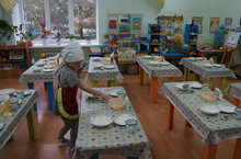 Рубцова Г.И. провела открытый просмотр режимного момента в подготовительной группе "Умырзая" " Сервировка стола к обеду".