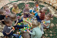 В ранней группе, в режимный момент прошло занятие по конструированию. Играя в лего дети: