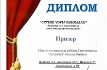 « Алтынчәч» балалар бакчасы тәрбиячесе Зиятдинова Алсу Юныс кызы шигырь, хикәя язучылар өчен район күләмендә узган «Иҗатка беренче адымнар» конкурсында катнаштып диплом белән бүләкләнде.
