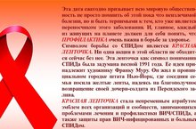 Ежегодно 1 декабря проводится Всемирный день борьбы со СПИДом, ежегодно эта дата призывает всю мировую общественность помнить об этой неизлечимой болезни и быть терпимыми к тем, кто уже заболел.