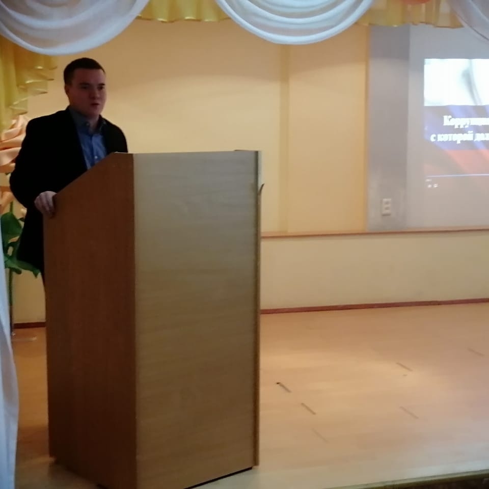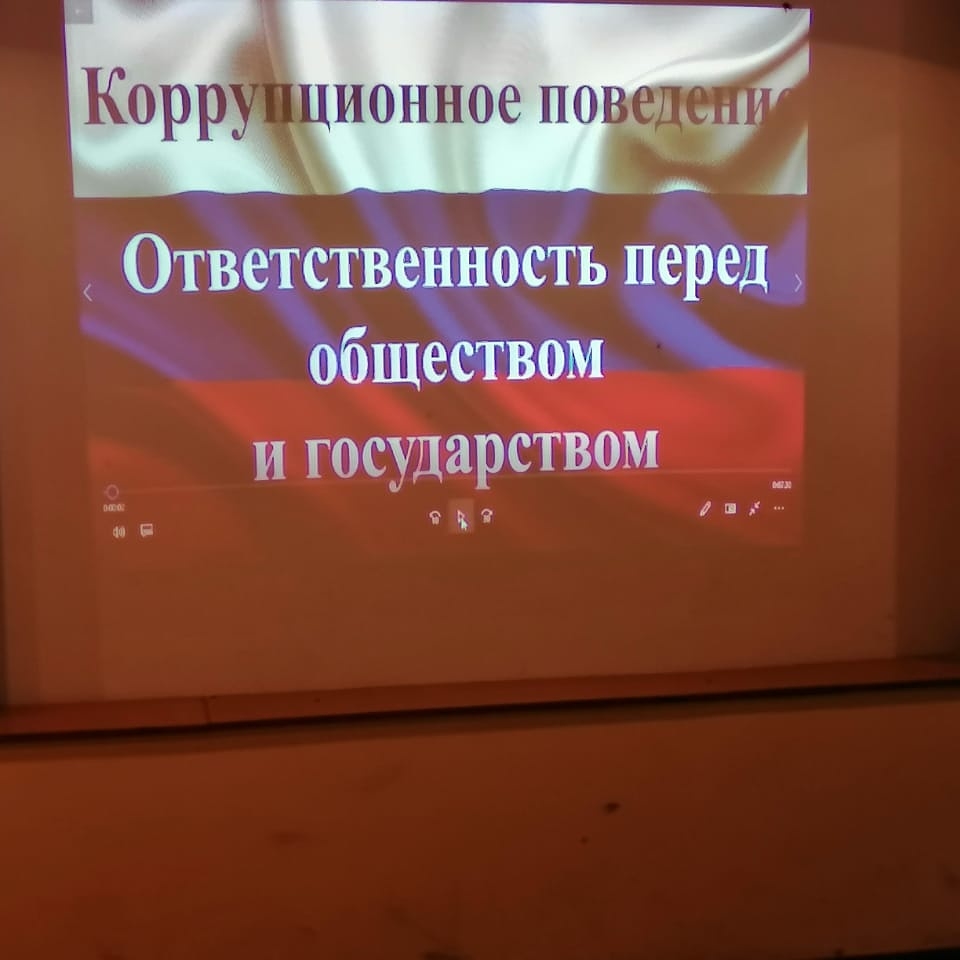 Опубликовано: 25.11.2019Сегодня в актовом зале нашего училища состоялась встреча студентов второго курса с помощником главы администрации Токаревым Марком Олеговичем и сотрудниками многопрофильного молодежного центра « Веста», на которой был продемонстрирован информационный видеоролик на антикоррупционную тему и проведена увлекательная беседа.