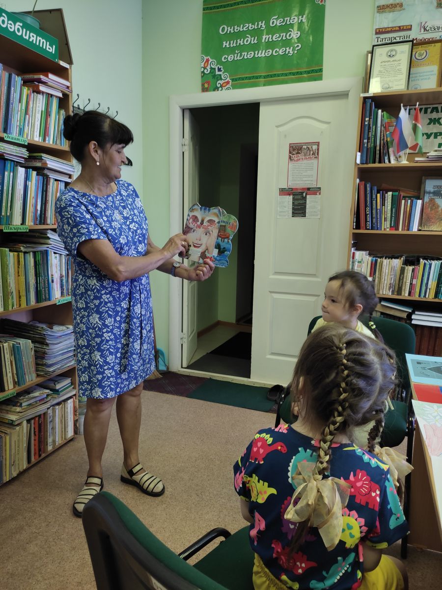 Китапханәче балаларны китаплар, журналлар коллекциясе белән таныштырды, китаплар белән дөрес мөгамәлә итү, китапларны ничек сайларга, абонементта һәм уку залында үзеңне ничек тотарга кирәклеге турында сөйләде. Балалар китапханәдә нинди принцип буенча урнашканнарын, балалар күбрәк укырга яратканнарын белделәр.