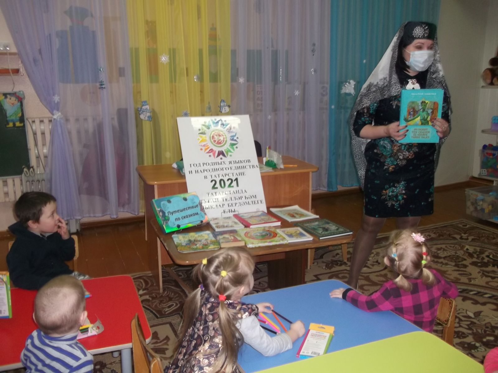 Опубликовано: 29.01.2021В рамках Года родных языков и народного единства в Республике Татарстан в 2021 году. 29 января 2021г. было проведено мероприятие "Путешествие по сказкам", также была проведена Акция " Через сказки к миру на родном языке" совместно с заведующей Николаевской сельской библиотекой Нуриевой Г.А.