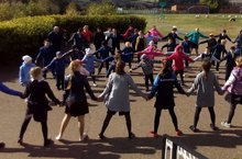 Сегодня с учащимися и учителями школы, выпускники 9 класса провели флешмоб, посвященный недели "Молодежный профактив".