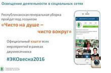 Фото и информация о проведении санитарно-экологического двухмесячника, который стартовал в Татарстане 1 апреля, будет публиковаться в социальных сетях с хештегом #эковесна2016. Выкладывать могут все желающие – участники субботников и средников, природоохранных акций, активисты экологических движений, общественных организаций, школьники, студенты – все, кто внесет свой вклад в сохранение окружающей среды. По итогам двухмесячника особо активные получат свое вознаграждение - будут организованы и проведены конкурсы «Самая экологичная семья-2016», «Лучшее предприятие субботника 2016», «Лучшая школа субботника-2016», «Лучший ВУЗ субботника -2016»; «Лучший муниципальный район субботника – 2016», «Лучшая управляющая компания субботника – 2016».