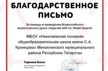 Муниципальное бюджетное общеобразовательное учреждение «Николаевская основная общеобразовательная школа имени С.А. Кузнецова» Мензелинского муниципального района РТ/Татарстан Республикасы Минзәлә муниципаль районы “С.А.Кузнецов исемендәге Николаевка төп гомуми белем мәктәбе” гомуми белем муниципаль бюджет учреждениесе