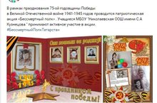 в Великой Отечественной войне 1941-1945 годов проводится патриотическая акция «Бессмертный полк» . Учащиеся МБОУ "Николаевская ООШ имени С.А Кузнецова " принимают активное участие в акции.