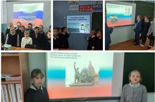 С 21 октября по 29 октября в школе проходят мероприятия приуроченные к празднованию Дня народного единства. В 1-4 классах прошел классный час ,на котором учащиеся познакомились с историей возникновения праздника, ребята выполняли тесты. В заключении беседы, дети исполнили гимн России.