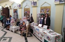 Выставка лаурятов второй степени в финальном этапе Республиканского детского художественного фестиваля народного творчества «Без бергә”в номинации “Семейная диннастия мастеров” семья Бубековых, вышевка гладью.