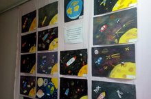 Ко Дню космонавтики в школе организованна творческая выставка работ художественного отделения "Когда я вырасту, полечу на Марс" ( Препод. Коротина Е.С.)
