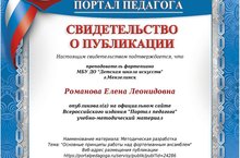 Поздравляем преподавателя по классу фортепиано Романову Елену Леонидовну с публикацией методической разработки "Основные принципы работы над фортепианным ансамблем", на официальном сайте Всероссийского издания "Портал педагогов".