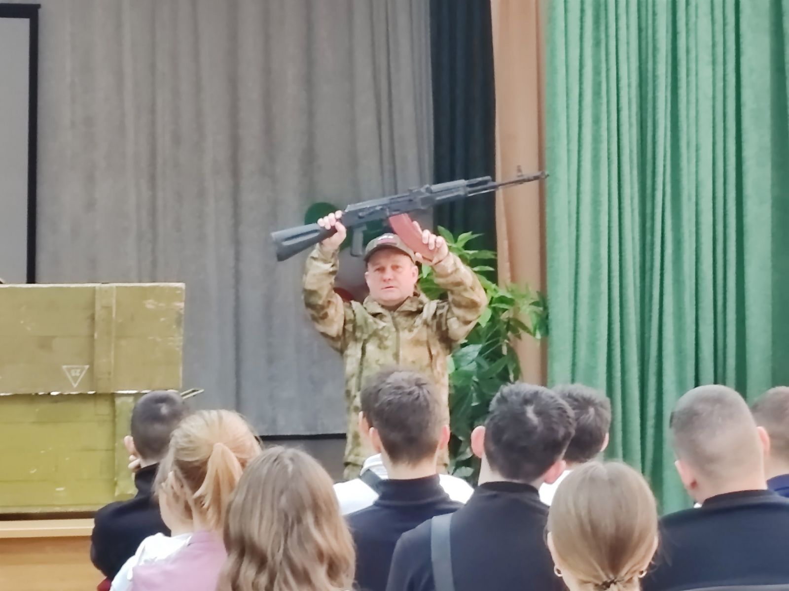 Центральным элементом урока стало демонстрационное выступление: Андрей и Александр привезли с собой образцы экипировки и вооружения, используемого в зоне СВО. Ребята могли вживую увидеть, как выглядит боевая форма, бронежилеты, шлемы. Особый интерес вызвали различные виды стрелкового оружия, а также современные беспилотные летательные аппараты – дроны, без которых сегодня невозможно представить ведение боевых действий. Каждый экспонат был не просто предметом, а свидетельством нелегкой службы.