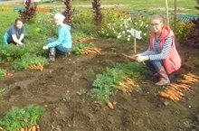 Погода нас балует. Работа на пришкольном участке кипит. Пришло время убирать морковь, свеклу, капусту, кабачки, тыкву.