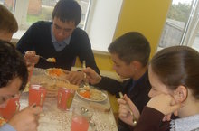 Ежедневно в нашей школе соблюдают правила здорового питания.Правильное питание человека должно состоять на одну треть из овощей и фруктов. В нашем меню присутствуют огурцы, помидоры, салаты из моркови, свеклы, белокачанной капусты, овощное рагу, картофельное пюре, щи, кисель, яблочный напиток, персиковый сок, компоты из смеси сухофруктов, из свежих плодов, чай с лимоном.