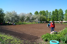 Учащиеся школы и учителя работают на пришкольном участке: высадили рассаду цветов, вспахали землю и засеяли морковь, свеклу, сеенчек.