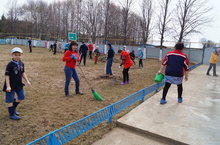 Учащиеся школы принимают активное участие в уборке пришкольной территории.