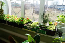 В кабинете биологии нет свободного места. На подоконниках выращивается рассада овощных культур и цветов.