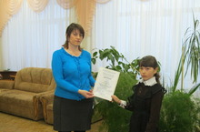 Вручение награды за второе место в районном конкурсе "Замечательный вожатый" 24.02.2014