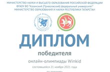 Ученица 6 класса Абдуллаева А. стала победителем онлайн-олимпиад Winkid Казанского федерального университета по русскому языку и математике. Поздравляем с заслуженной победой, желаем дальнейших успехов и еще многих побед!
