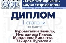 Учащиеся нашей школы под руководством Галиевой Гульсарии Ульфатовны участвовали в lll международном конкурсе "Татар сузе янгырый","Звучит татарское слово",посвященный 120-летию со дня рождения Мусы Джалиля. Труд учителя и ребят не пропал даром,они завоевали призовые места.