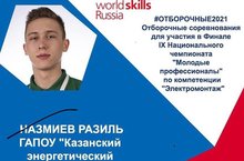 Поздравляем выпускника нашей школы Назмиева Разиля с успешным выступлением на отборочных соревнованиях для участия в Финале IX Национального чемпионата "Молодые профессионалы" (Worldskills Russia) по компетенции "Электромонтаж"! Коллектив нашей школы желает тебе плодотворной работы, успешной демонстрации своей профессиональной компетентности! Мы гордимся тобой!