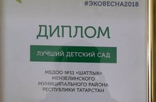 В апреле 2018 года в Татарстане стартовал экологический двухмесячник #ЭКОвесна-2018, направленный на привлечение внимания общественности к проблеме обращения с отходами, содействию улучшения экологической обстановки в городах и населенных пунктах и формированию культуры общества. В рамках проведения в Республике Татарстан санитарно-экологического двухмесячника объявлен конкурс «ЭКОвесна2018». Он проходил по следующим номинациям: «Лучший детский сад», «Лучшая школа», «Лучшая семья», «Лучшее предприятие». Наш детский сад принял активное участие в экологическом двухмесячнике и был награждён Дипломом "Лучший детский сад"