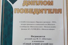 Наш любимый детский сад №11 "Шатлык" стал победителем в номинации "Самый лучший детский сад"! ✨ Благодарим всех, кто поддержал нас в голосовании, проводившемся в социальной сети ВКонтакте! Это достижение — результат вашего доверия! Мы гордимся тем, что наша работа получила столь высокую оценку, и обещаем продолжать радовать вас заботой, вниманием и теплотой. Спасибо каждому, кто был с нами на пути к этой победе!