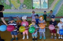 Сегодня в младшие группы на праздник воздушных шаров пришла кукла Катя. Детишки играли с мячами, шариками, танцевали с платочками. Малыши радовались и веселились , получили огромное удовольствие от игр с