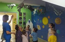 Все дети мечтают об увлекательных открытиях и путешествиях, полных невероятных приключений. А что может быть интересней, чем полёты к далёким звёздам и загадочным планетам, которые ждут своих первооткрывателей? Уникальная возможность прикоснуться к неизведанному, сделать шаг к исполнению своей мечты предоставилась воспитанникам старшей группы №9 через миниэкскурсию в уголок Космонавтики. На экскурсии ребята раскрыли главные тайны и загадки вселенной - познакомились с солнечной системой, с космической техникой - спутником, ракетой. -
