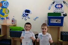 Воспитанники подготовительной группы N13, Красильников Александр и Ярмолинский Степан (воспитатель Недорезова И. В.) приняли участие во Всероссийском конкурсе по лего-конструированию и робототехнике "Изобретательно и занимательно!", получили Дипломы за первое место. Поздравляем! .
