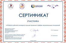 Общероссийская общественная организация «Ассамблея народов России», Автономная некоммерческая организация «Ресурсный центр в сфере национальных отношений» в партнёрстве с Международным союзом неправительственных организаций «Ассамблея народов Евразии» и Общероссийским общественным движением «Сотворчество народов во имя жизни» (Сенежский форум) провели в 2022 году V Всероссийский конкурс лучших практик в сфере национальных отношений, в котором принял участие МБДОУ № 11 "Шатлык".