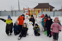 Дети старшей группы слепили семью снеговиков. -