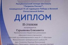 Воспитанница МБДОУ 11 " Шатлык" Гурьянова Елизавета приняла участие в Республиканском конкурсе - фестивале "Патриоты России"