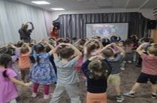 В младших и средних группах прошло увлекательное спортивное развлечение – путешествие «В гости к зверятам». Развлечение началось с прохождения дорожки здоровья, и преодоления препятствий по дороге «в зимний лес». Просмотр презентации «Про лесных животных», в которой дети отгадывали загадки, закрепляли знания о диких животных. Дети отправились дальше в лес на паровозике (музыкальный танец – игра «Паровозик с остановками»). Дети активно участвовали в играх - эстафетах «Перевези груз», «С кочки на кочку», «Собери снежки». Задорно и весело исполняли музыкальные танцы - игры «Самолётик», музыкальную танец – игру на ускорение «Потанцуй-ка».