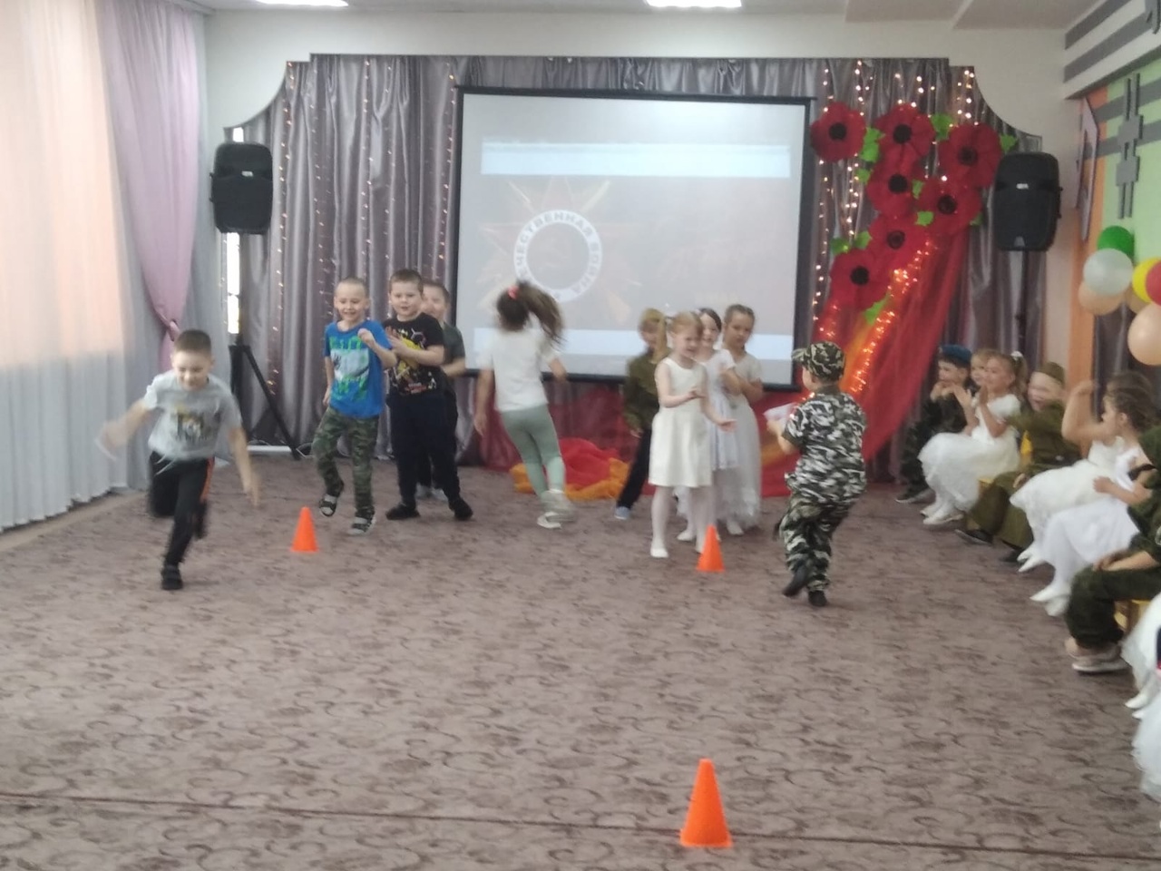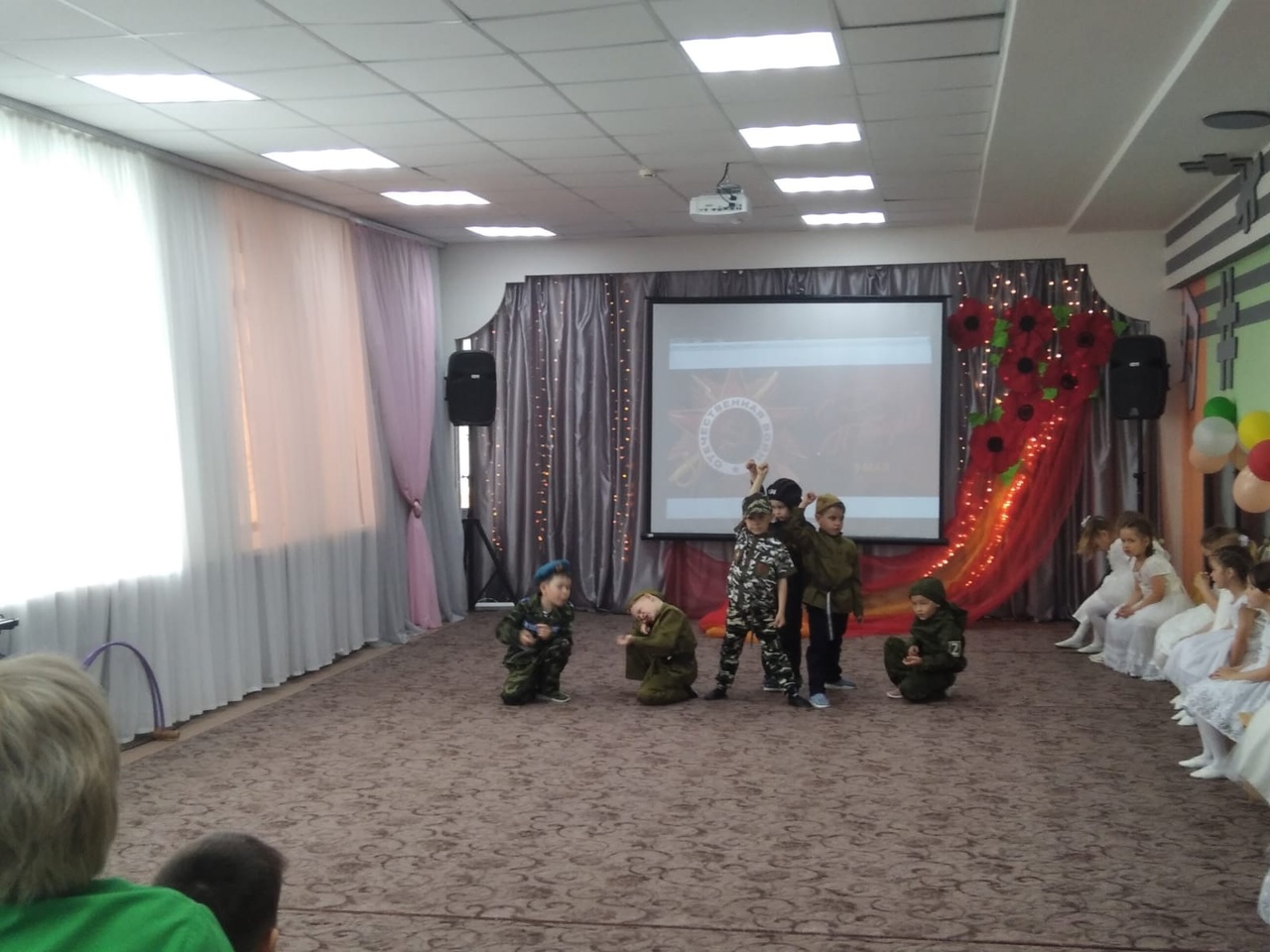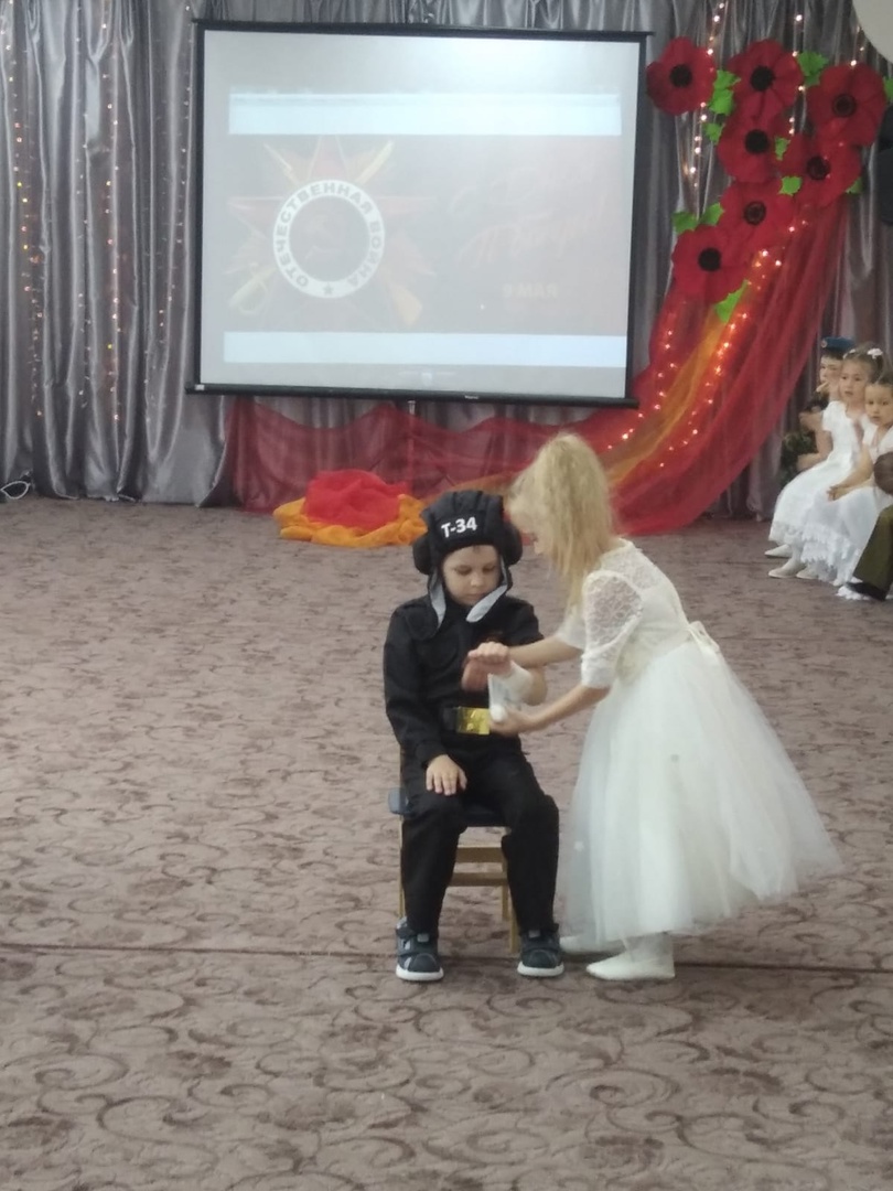На протяжении десятилетий День Победы остаётся самым трогательным, самым душевным праздником. Сегодня в детском саду проходило мероприятие, посвящённое этому дню. Дети пели патриотические песни, танцевали танцы, играли в подвижные игры, в заключении посмотрели мультфильм про войну. Все почтили память погибшим, минутой молчания.