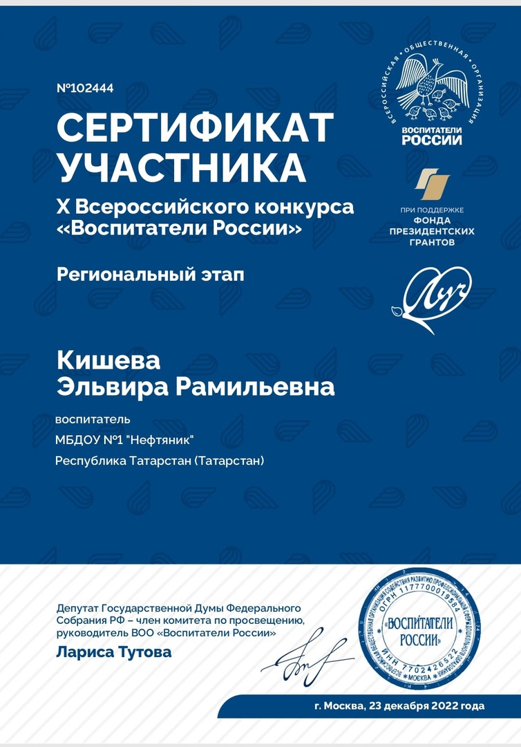 Педагоги МБДОУ №1 «Нефтяник» приняли активное участие в X Всероссийском конкурсе «Воспитатели России». Поздравляем желаем творческих успехов!!!