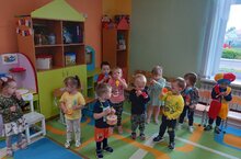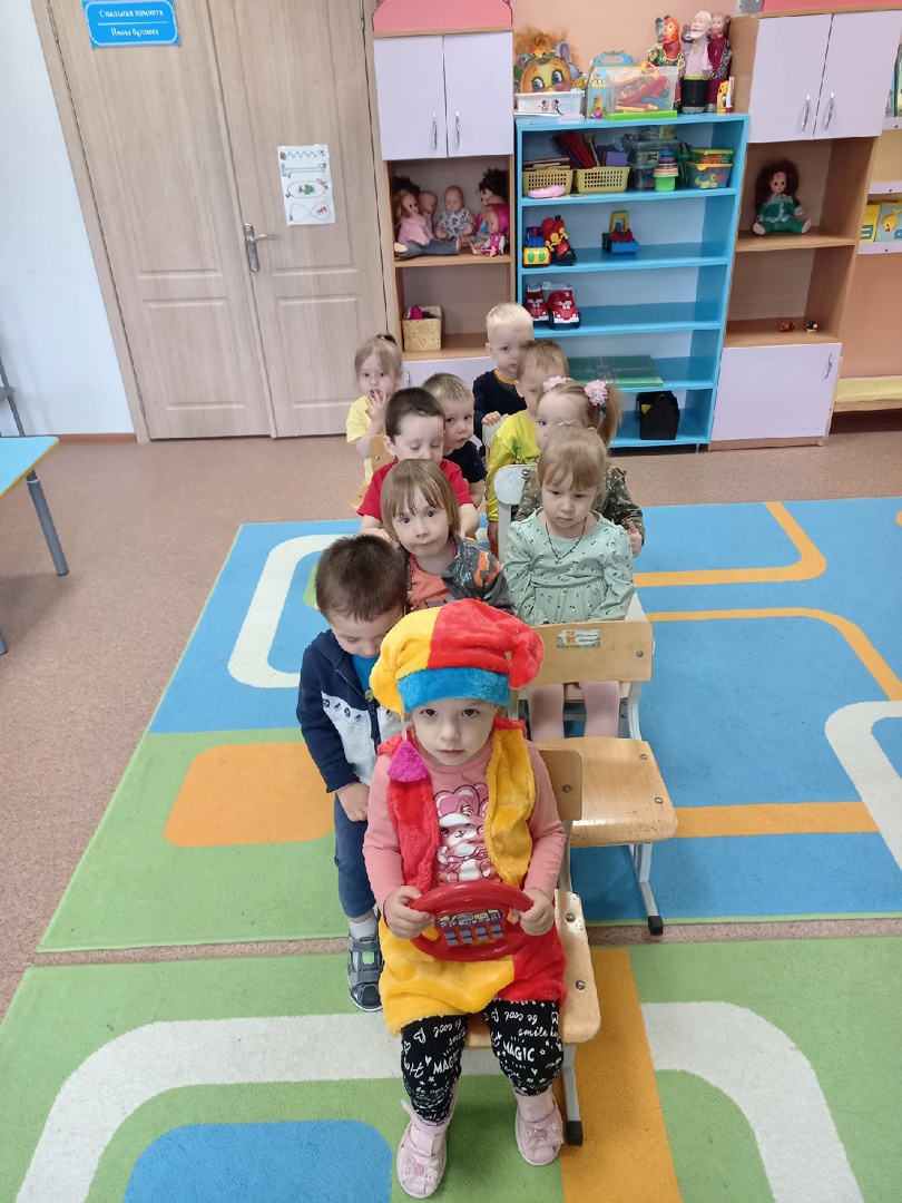 В гости к ребятам ранней группы «Смешарик» пришел маленький Петрушка. Он провел с ребятами весёлую зарядку и принял участие в весёлых играх. "Стой машина", "Брось- поймай". Малыши проявили ловкость и быстроту, а некоторые дети, вызвались попробовать себя в роли Петрушки. Развлечение оставило у всех радостное настроение.