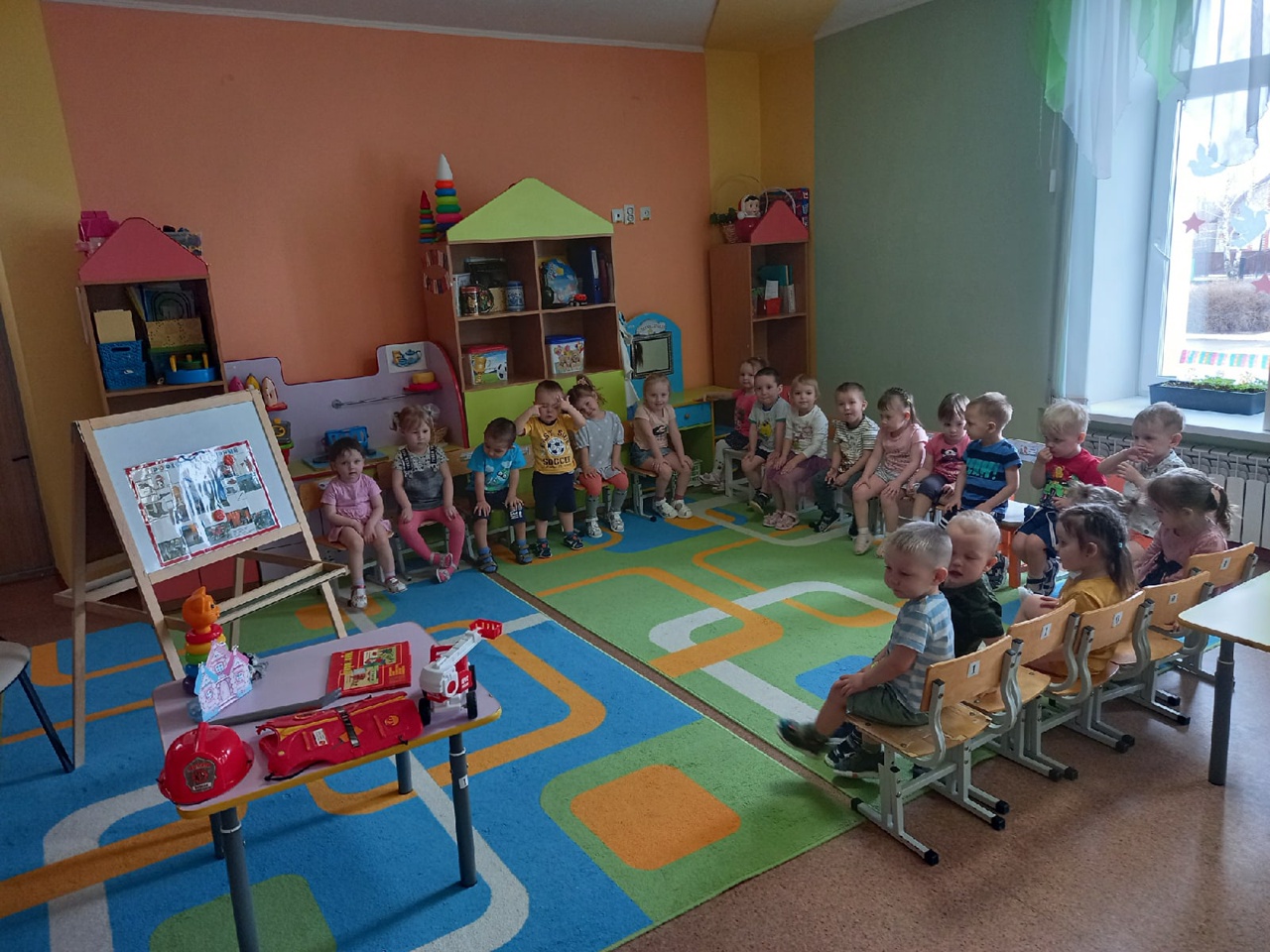 "Тили- тили- тили - бом! Загорелся Кошкин дом!» В младшей группе МБДОУ "Нефтяник" прошло мероприятие по пожарной безопасности. Дети познакомились с профессией пожарного, который продемонстрировал свой костюм, рассматривали модель игрушечной пожарной машины, читали произведение С. Я. «Кошкин дом», На примере этой сказки детей познакомили с правилами пожарной безопасности, о последствии игр со спичками и пожара