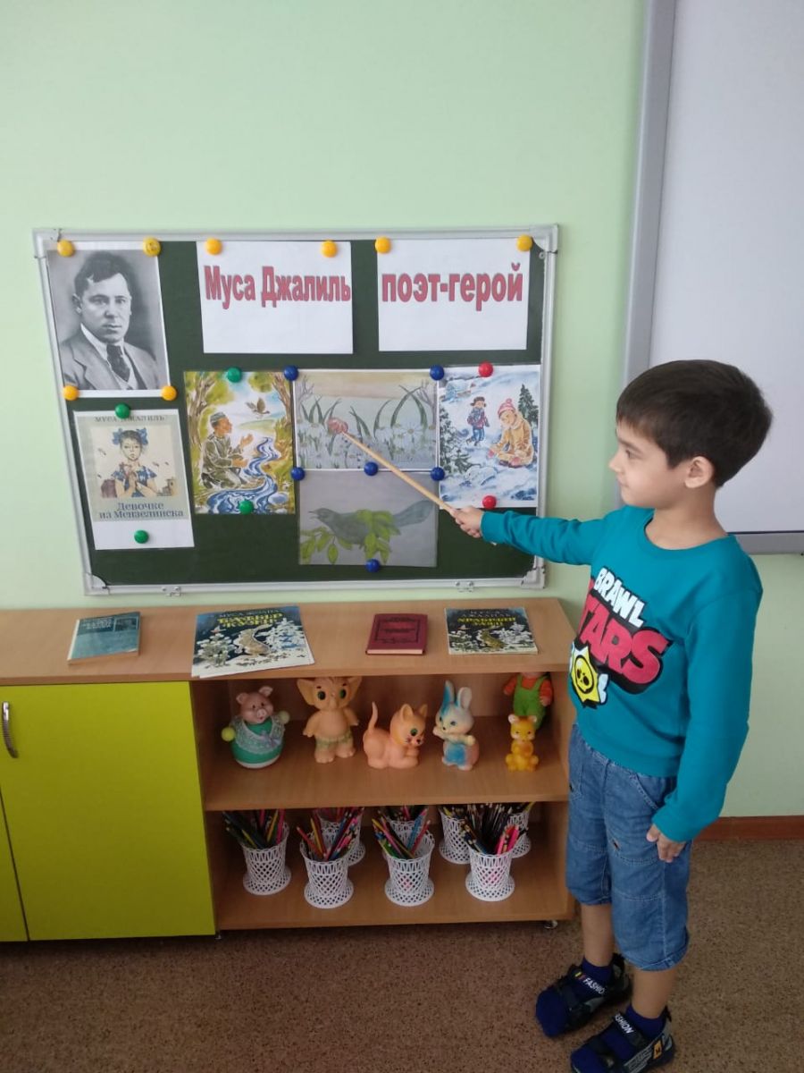 Сегодня Галиева Л.К. провела тематическое занятие, посвященное 115-летию со дня рождения М.Джалиля. Дети знакомились с жизнью и творчеством М.Джалиля, выразительно читали стихи М.Джалиля на русском, татарском, английском и марийском языках, проводили викторину по произведениям М.Джалиля, исполнили песню «Часы». Такие занятия стали традиционными в нашем саду. Дети очень любят творчество поэта-героя.
