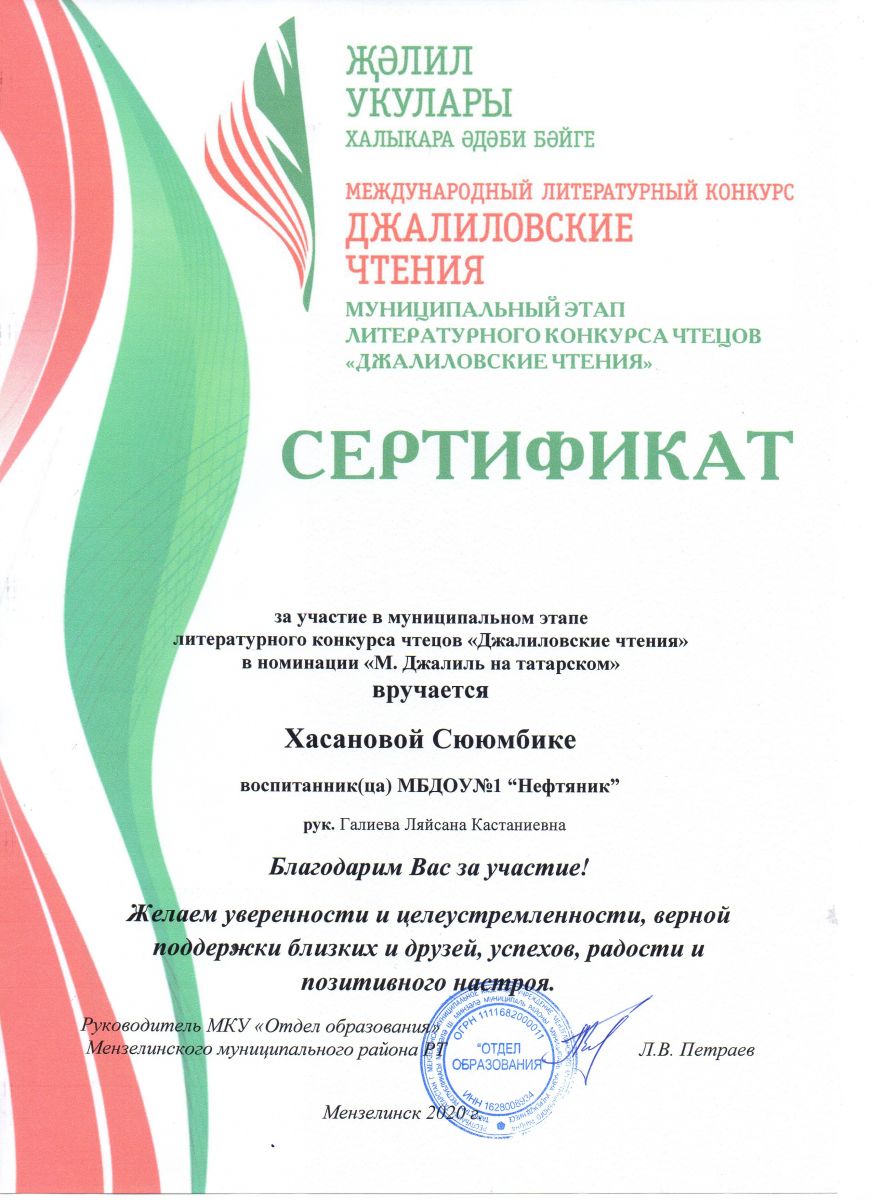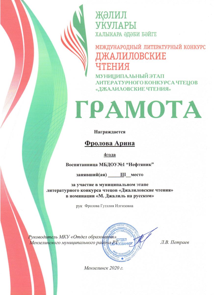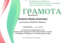Завершился муниципальный этап литературного конкурса чтецов "Джалиловские чтения", в котором приняли участие наши воспитанники. Петраева Айвика ("Шошо"на марийском языке, воспитатель Галиева Л.К.) - I место, Сахапов Амир (Goob bye, my clever girl" на английском языке, воспитатель Фролова Г.И.) - II место в номинации "М.Джалиль на языках народов мира". Фролова Арина ("Красная ромашка", воспитатель Гассман Е.Р.) - III место в номинации "М.Джалиль на русском". И Хасанова Сююмбике ("Парашютсыз күрчак", воспитатель Галиева Л.К.) -получила сертификат за участие в номинации "М.Джалиль на татарском". Поздравляем ваш наши звездочки!!!!!!!