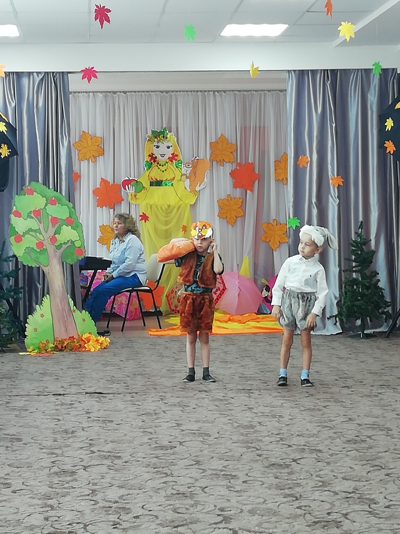 Лето кончилось, и вотОсень золотаяНас встречает у воротС щедрым урожаем.Все деревья и кустыРасписала кистью:В бронзу, золото и медьПревратила листья.Дождь холодный моросит,Листья опадают,Осень золотым ковромЗемлю укрывает.В группах "Фиксик" и "Бельчонок" прошели осенние праздники по одноименной сказке. -