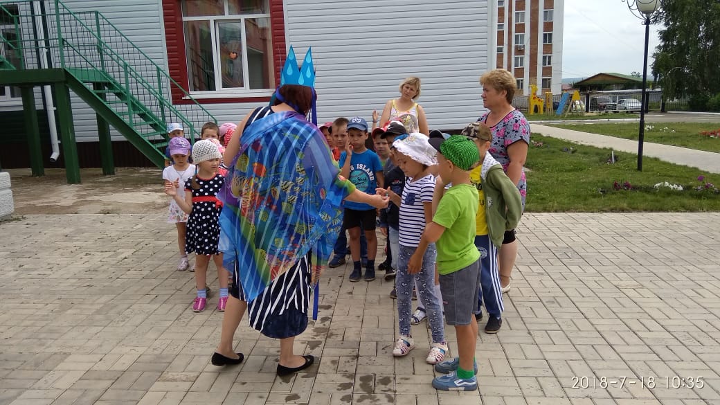 И малые пруды.Воспитатель Фролова Гузэлия Илгизовна провела развлечение "Бесценная и всем необходимая вода". В гости к ребятам пришла Царица Вода. С ней они читали стихи, играли в игры эстафеты: "Набери воды в бутылку", "Зонтики", "Ручеек", отгадывали загадки. За правильно выполненное задание дети получали капельки. Собравший больше всех капелек стал победителем. Все получили от Царицы Воды сладкие призы.